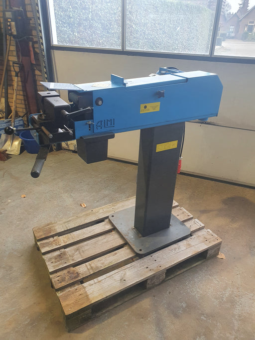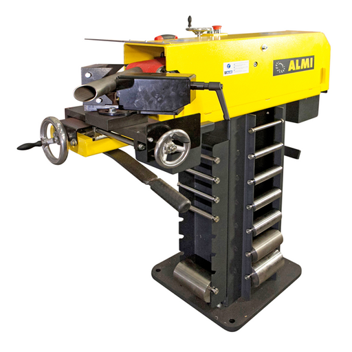 ALMIMaximale capaciteit: Ø 76,1 mm Variabele hoek: 30-90 graden Bandsnelheid: 30 meter p/sec Slijpband: 2000x100 mm Bediening: Hefboom Motorvermogen: 3...